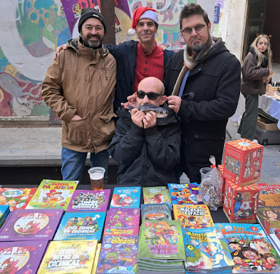 Hoy domingo 22 de diciembre, tras el cuentacuentos en la Plaza del Pilar, he estado en la Feria Navideña en las Armas. En el stand de Malavida, Santi Blasco, Roberto Malo, Kalitos y Xcar Malavida.